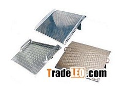 The Aluminum Truck Dockboard is engineered and built to maximize safety while handling heavy fork trucks and loads. The beveled edge is designed for smooth entry and exit. Locking legs prevent movement during loading and unloading operations. Locking legs are uneven to allow the dockboard to sit canted, while not in use, for easier pickup by fork trucks. Welded aluminum safety curbs prevent accidental runoffs and provide visible driving lane. When using three-wheeled fork trucks order dockboard with capacity at least four times the lifting capacity of fork truck. The width of the dockboard should be at least 15 (in.) wider than the load or equipment passing between the curbs. Bend is 11° and 9" from the edge and the legs are 12" from the edge. Manufactured in compliance with OSHA.